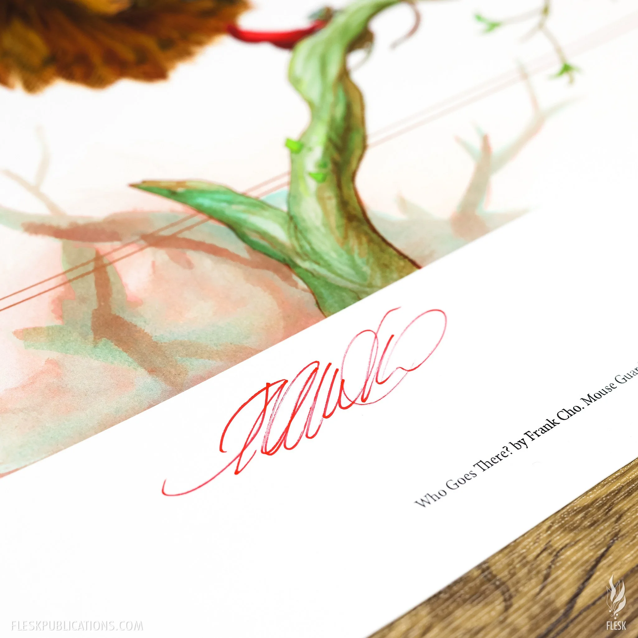 This 13 x 19" high quality print features artwork titled “Mouse Guard” by Frank Cho. This print utilizes 300 gsm acid free matte paper and is printed with archival and fade resistant inks. This print is signed in pen by Frank Cho.