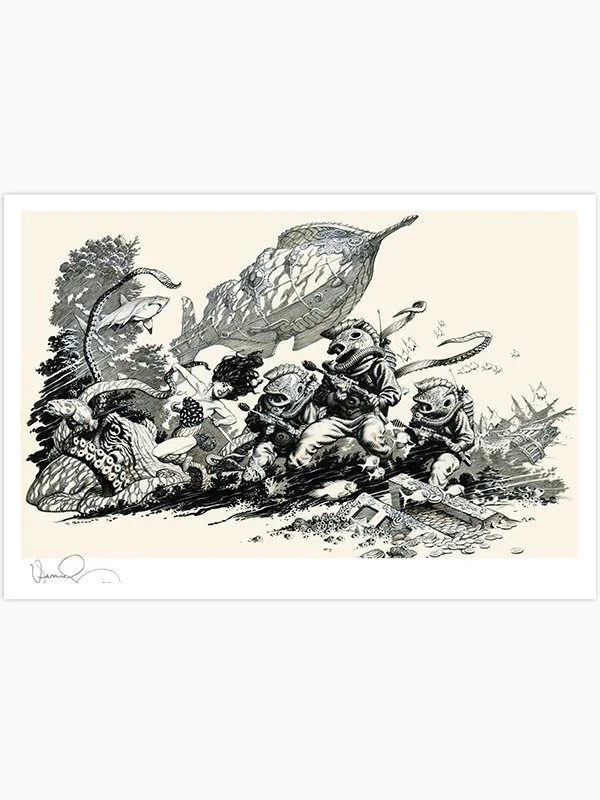 During an impressive period—2005 through 2012—Mark Schultz turned his attention to producing a body of personal works and private commissions, focusing on subjects about which he feels most passionate. Among them are characters and tableaux pulled from mythology, science-fantasy and pulp adventure. In addition, there are many examples of Schultz’s commercial works done for comics, film and books.