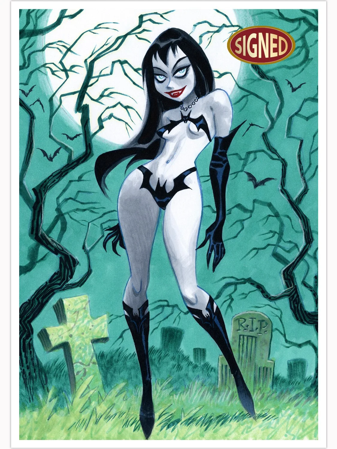 Welcome to Bruce Timm’s first signed variant comic event! We are offering a new exclusive Vampirella #1 cover, along with limited quantities of Bruce’s previous signed sketchbooks that he self-published in the 2000s. We also have a small number of various signed Naughty and Nice books and Teasers. Plus, two signed prints!